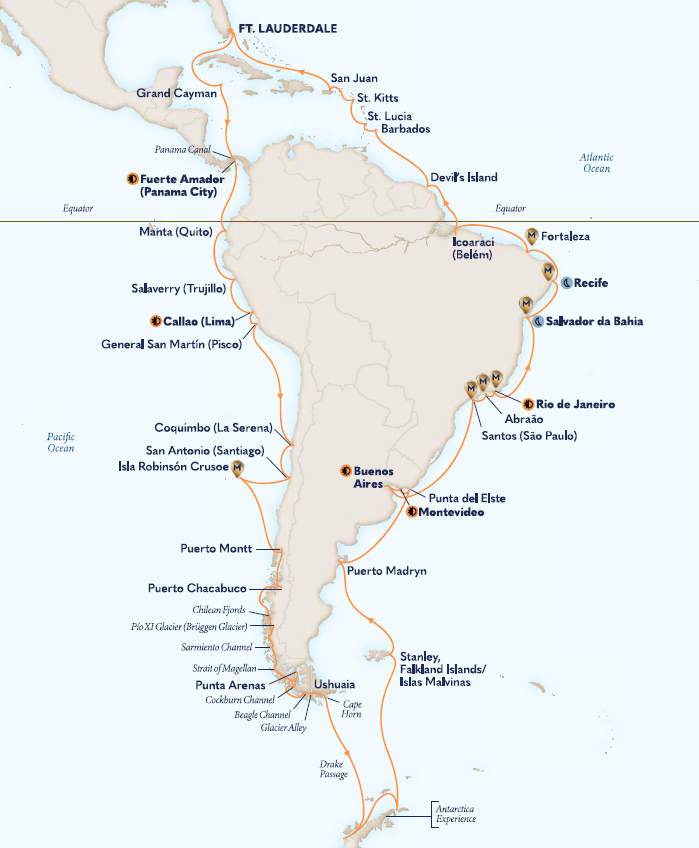 Join us for Holland America's 2027 Grand South America & Antarctica Voyage on intimate Zaandam. Circumnavigate South America, as well as experience Antarctica. Overnight stays in Fuerte Amador (Panama City), Callao (Lima), Montevideo, Buenos Aires and Rio de Janeiro allow access to vibrant cities and exciting overland tours. Days at sea provide more time to relax, connect with your fellow travelers and enjoy Holland America's impeccable service. Cruise Specialists clients appreciate the benefits of a Voyage Host and special group amenities, combining for a splendid journey.