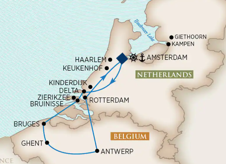 Discover the beauty and rich history of the Dutch and Belgian waterways in the spring on board an AmaWaterways Tulip Time Cruise. Admire the spectacular tulip carpets in Keukenhof Gardens. Visit the lush green countryside of Kinderdijk, UNESCO World Heritage Site and home to the country’s greatest concentration of windmills, and experience Amsterdam’s distinctive architecture and vibrant nightlife. Explore the great medieval cities of Antwerp and Ghent, where tasty treats and cultural traditions of the friendly Dutch and Flemish people await you.
