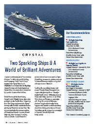 Crystal’s 2027 World Cruise shines the Hiva where you’ll enjoy an overnight • Unlimited dining at Osteria luxe lifestyle closer to home? Consider outdoor enthusiasts. Explora I • February 5, 2027