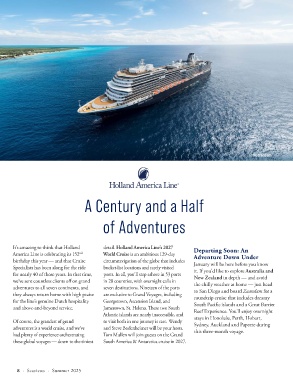 for nearly 40 of those years. In that time, ports. In all, you’ll step ashore in 53 ports New Zealand in depth — and avoid America Line’s Legendary Voyages many can say they’ve visited both Volendam • January 5, 2027